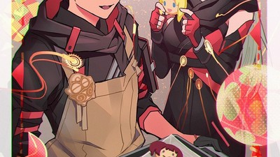万代南梦宫万代《绯红结系》公开两周年纪念贺图,由 落合功多 和 石川珠实 绘制。