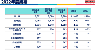 万代南梦宫最新财报:22-23财年销售额达到9900亿日元