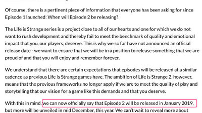 《奇异人生2》第二章“RULES” 将于明年1月推出