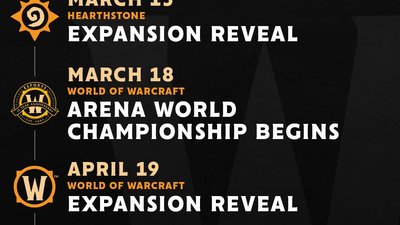 魔兽世界暴雪宣布第一款专为移动平台设计的基于《魔兽》宇宙的游戏将于5月公开。《魔兽世界》下一个内容更新将于4月20日公布。