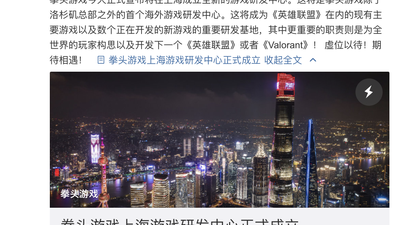 无畏契约在ChinaJoy 2021上,拳头游戏宣布,他们将在中国上海成立全新的拳头游戏上海游戏研发中心,这是首个拳头游戏在海外成立的游戏研发中心。拳头游戏上海游戏研发中心将将成为包括《英雄联盟》在内的现有主...