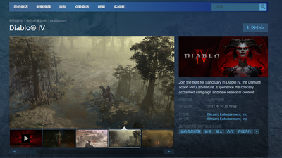 暗黑破坏神暴雪《暗黑破坏神4》将于 10月18日 正式上线,现已上架Steam页面,支持中文。