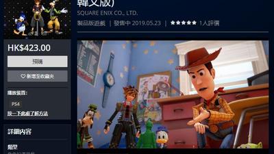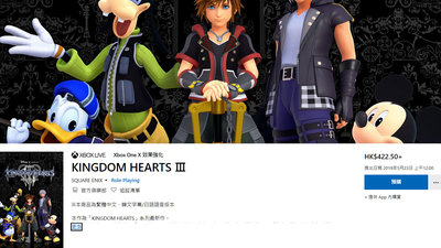 王国之心繁体中文版的《王国之心3》已经开启了PS4和Xbox商店的预购,价格均为423港币,约合人民币360元。需要注意的是其他版本不会补充中文更新,因此购买时务必注意。