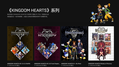王国之心为了庆祝《王国之心》系列20周年,《王国之心 1.5+2.5 高清混合版》《王国之心 2.8 终章高清版》《王国之心 3+Re Mind》三款游戏将以云游戏的形式登陆Switch平台,玩家可直接入手合...