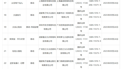 大事件国家新闻出版署公布 2025年9月 国产网络游戏审批版号 名单,米哈游《崩坏:因缘精灵》、网易雷火《星绘友晴天》、腾讯萨罗斯《归环》、巨人网络《热血王朝:篮球》等 145 款游戏过审。国家新闻出版署今...