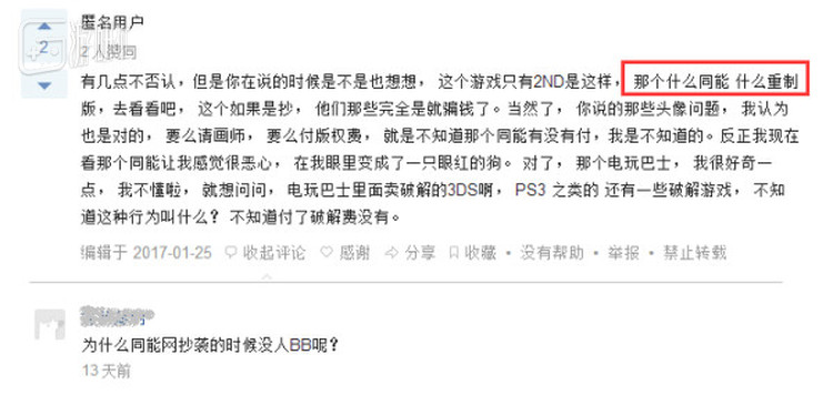 “我从来不觉得众筹有什么问题,毕竟都是粉丝买单,大家能玩到一份属于自己的情怀是好事,但有各种图像改头换面,还要上Steam,那就真是把脸丢大了。”