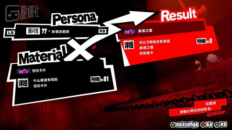 虽然有些血腥和深奥,但理解之后便会发现这个系统的乐趣。就和P5R的日常部分一样,打造面具的每一步都能感觉到我在变强,换个专业说法就是“正反馈”。