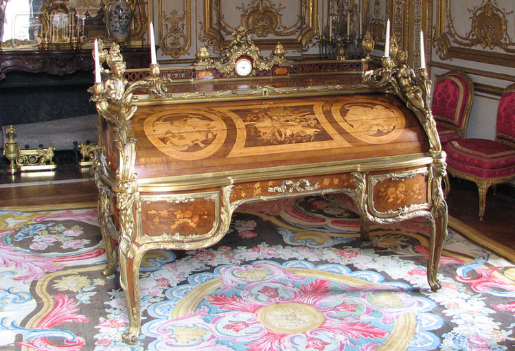 当时连路易十五本人,也授命Oeben按照他的需求制作一款“卷顶式”的机关书桌,虽然后来几经易手,但由于是皇室家具,这款书桌被保存至今,目前位于法国的凡尔赛宫内展出。