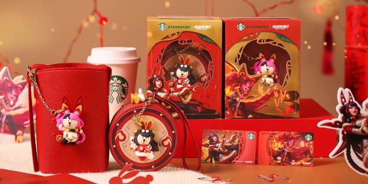 这一季的会员星礼包也年味十足。1月10日起,星巴克中国将在全国限量发售“星巴克英雄联盟手游合作会员星礼包”,这是星巴克中国首度携手游戏品牌合作。星巴克人气IP熊店长摇身一变,客串起了披上新春皮肤的英雄们——“悦鼓春生