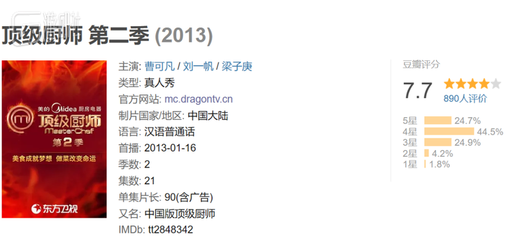 不过它的中国姊妹篇就没这么幸运了——东方卫视版《顶级厨师》引起的反响远称不上热烈,在播出两季后便草草收场,就连原本的官方微博都被后来的其他综艺节目鸠占鹊巢。