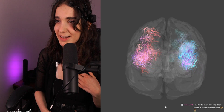 Perrikaryal是一位Twitch上的游戏主播,也是一名心理学硕士。她平时直播的内容不仅限于游戏,偶尔也会和观众们聊聊心理学。她最开始佩戴脑电波监测设备坐在电脑前,只是想观察游戏过程中自己大脑的活动情况,后来突发奇想产生了用脑电波控制游戏角色的想法。