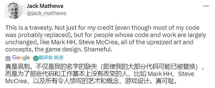 更令Zoid Kirsch感到失望的是,在游戏结尾处的致谢名单里,那些曾经参与了原版游戏制作的员工并没有得到应有的尊重,他们过去的努力被浓缩为简单的一句话,消失在了名为“原版制作团队”的集体荣誉之中。