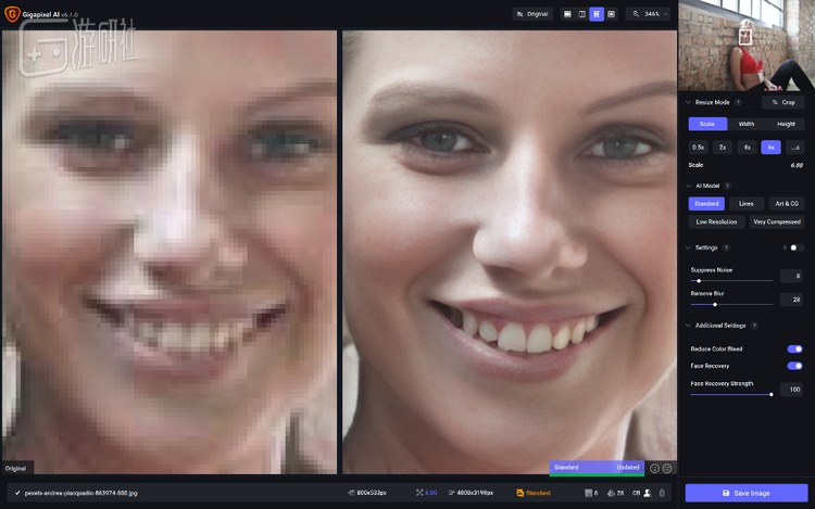 通过AI算法提升图像分辨率的技术,其实在几年前就已经诞生了。从最开始的定帧图片处理,到近年来逐渐成熟的“视频高清化”,像TOPAZ等公司都已经有了很好用的全套产品。只不过在此之前,这些技术大多仍属于后期图像处理领域。我们平时接触最多的视频和直播,仍然距离这些好用的技术有一定距离。