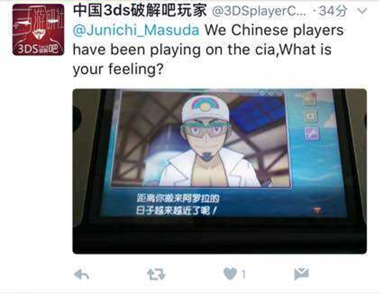 《宝可梦 日/月》是第一部带有官方简中的宝可梦正作,然而在游戏被破解后,偏偏有中国玩家跑去了制作人增田顺一的推特“跳脸”,留言称“我们中国玩家已经玩上了破解版了,你感觉怎样?”