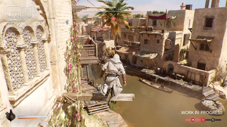 移动也是《幻景》的重中之重,我们开发了全新的跑酷动作,比如撑杆跳和推倒脚手架阻挡敌人等等,你甚至可以用上市集小摊的篷布或者货架来做这些事情。此外,我们还重新优化了跑酷的手感,并在整个巴格达添加了各种方便跑酷的建筑物和地形设置,玩家将能以飘逸灵动的姿态尽情探索这座风味十足的城市。