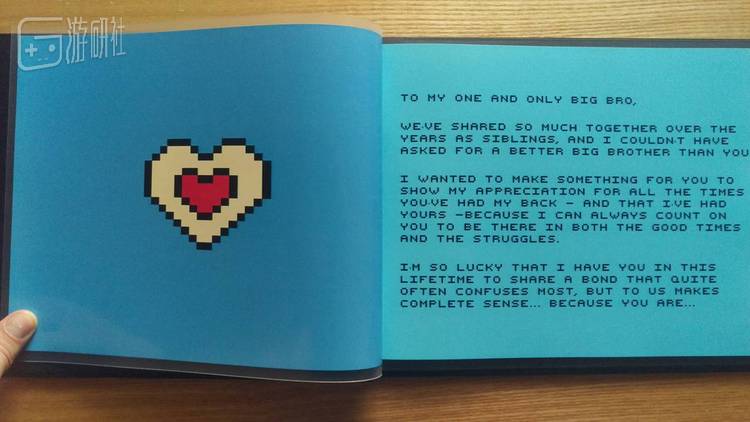 在纪念册中,她丝毫不掩饰的表达了自己对哥哥的感激,回忆他们在一起玩过的游戏,感谢哥哥带自己体验了这么多出色的作品,并由衷祝福他生日快乐。