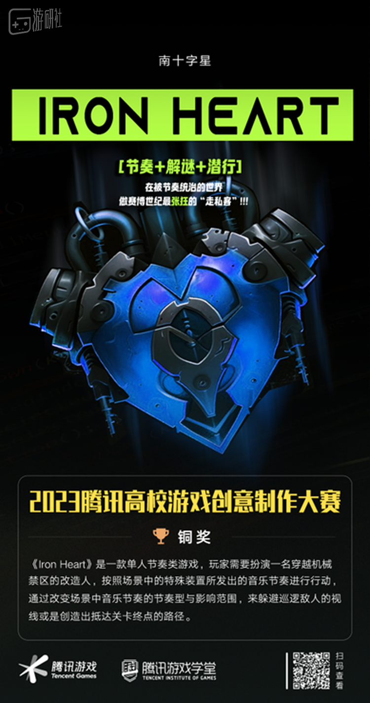 《Iron Heart》则是一款由清华互动媒体设计与技术中心专业(IMDT)的学生所创作的作品。这款游戏融合了解密、节奏与潜行等多种玩法,主要讲述了在未来机器统治的地球上,玩家所扮演的机器改造人,穿越危机四伏的禁区,完成一个个委托的故事。多种趣味玩法的结合,让玩家既能够体验到节奏移动的快感,也能获得解密通关后的乐趣。