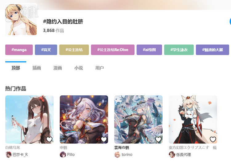 我之所以认为这件事有点奇怪,是因为人类的腹部结构、纺织工业和牛顿力学共同决定了透视肚脐不可能在现实中存在。然而即便如此,它还是成为了近年二游立绘的新趋势。在Pivix上,这一词条下有着3800多幅投稿作品。