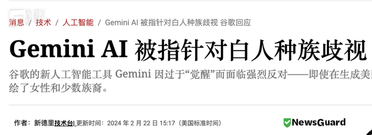 今天,谷歌AI「Gemini」在欧美网络上引起了争议。