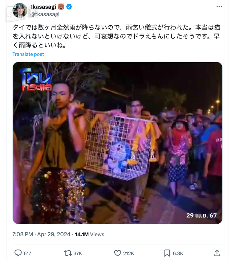 [https://www.animenewsnetwork.com/interest/2015-06-30/doraemon-stands-in-for-real-cat-in-thai-rain-ritual/.89857]