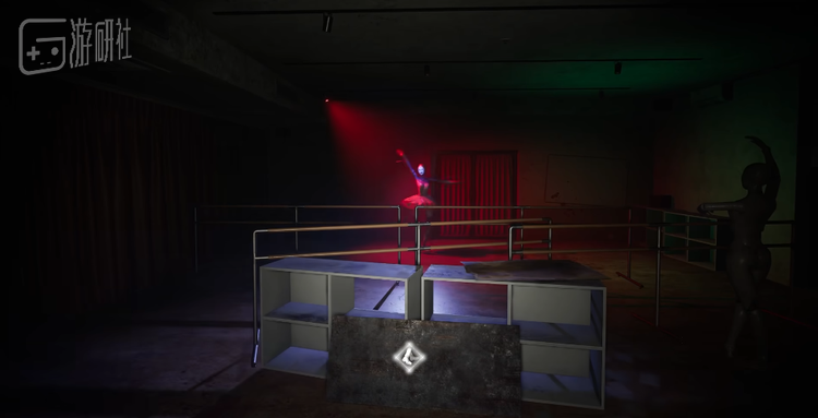 而在这个高强度的jumpscare之后,游戏来了一段融合了木头人玩法和芭蕾舞音乐、表现力有非常艺术气息的追逐战。女鬼不再是披头散发,满脸凶相地向你猛扑,而是颇为优雅地利用芭蕾舞接近你,尽管没有任何恐怖画面,但它在音乐的衬托下却极具压迫感。这也算是“不靠画面吓人”的一个优秀例子。
