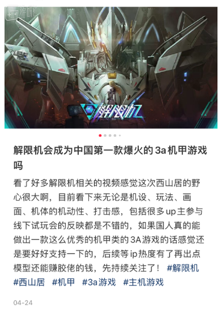 从《解限机》当前的口碑来看,只要上线后做好运营工作,这部游戏很难出现生存层面的问题。而《剑网3》能够屹立多年不倒,又恰好说明西山居最不缺的就是精细有效的运营策略。这就导致不少玩家产生了更大愿望,现在他们关注的焦点转移到了“这游戏上线后能不能成为爆款”上。