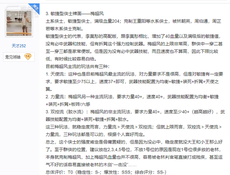比如我就发现了一篇名为“2023年侠士解析帖”的内容,作者详细解析了目前游戏中各类型的侠士属性和流派技巧,如果光看内容,说实话很难让人想到背后是一款如此简单的纯数值养成游戏。