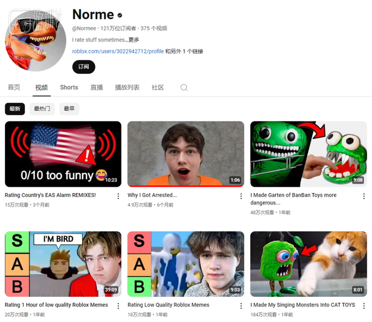 Norme是一位澳大利亚博主,自从2020年以来,他一共在油管上传了413 支视频,总播放量超过3.6亿次,拥有121万粉丝,总的来说数据非常可观。