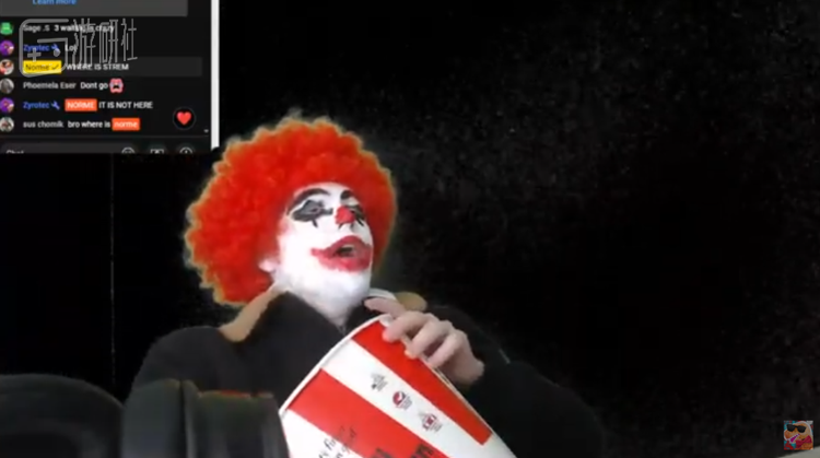 但这次转型并没有给Norme的事业带来任何起色。这一个月时间里,他几乎尝试了各种整活,像是在可口可乐里放曼妥思、绑住手玩《Only Up!》、甚至亲自扮成麦当劳小丑在《Roblox》送外卖,但每场直播的观众数量仍然寥寥无几。