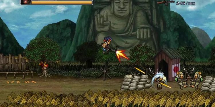 后来《二战前线2》的无敌版长期占据了网页推荐位,在里面感受过几次天下无敌的短平快乐趣后,我们也很少再打开这部游戏了。再后来大家毕业,然后随时间逐步失联,有关这部游戏的记忆也被尘封起来。也就是我第一次打开街机模拟器、发现《合金弹头》的时候,才会想起之前玩过一部跟这很像的游戏。