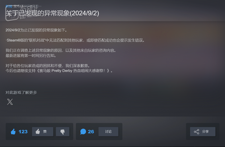 两周过去,《赛马娘》IP的最新衍生作《赛马娘 Pretty Derby 热血喧闹大感谢祭!》(以下简称《大感谢祭》)在Steam上的评价是64%,“褒贬不一”。