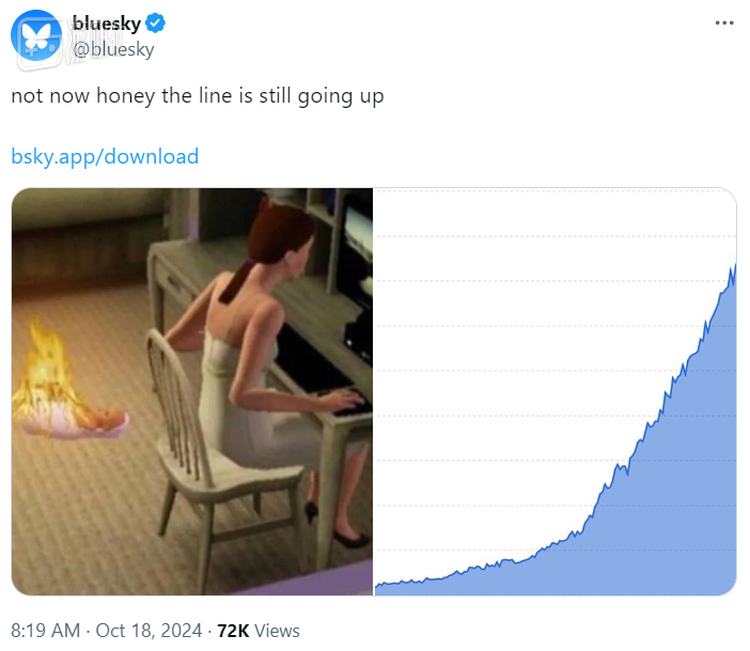 Meta旗下的Threads,去中心化平台Mastodon,还有玩家们更熟悉的Discord,都是创作者们的迁移目的地。这次迁徙中,Bluesky吃到了更多红利,短时间内有10万名用户涌入,一度让它的服务器不堪重负,出现登录失败等问题。