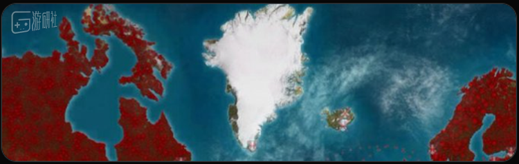 在新玩家开始游戏的时候,格陵兰岛的位置、形状和颜色在地图上都并不显眼,直到经过一系列病毒升级和策略选择,“侵略”渐渐进入白热化。