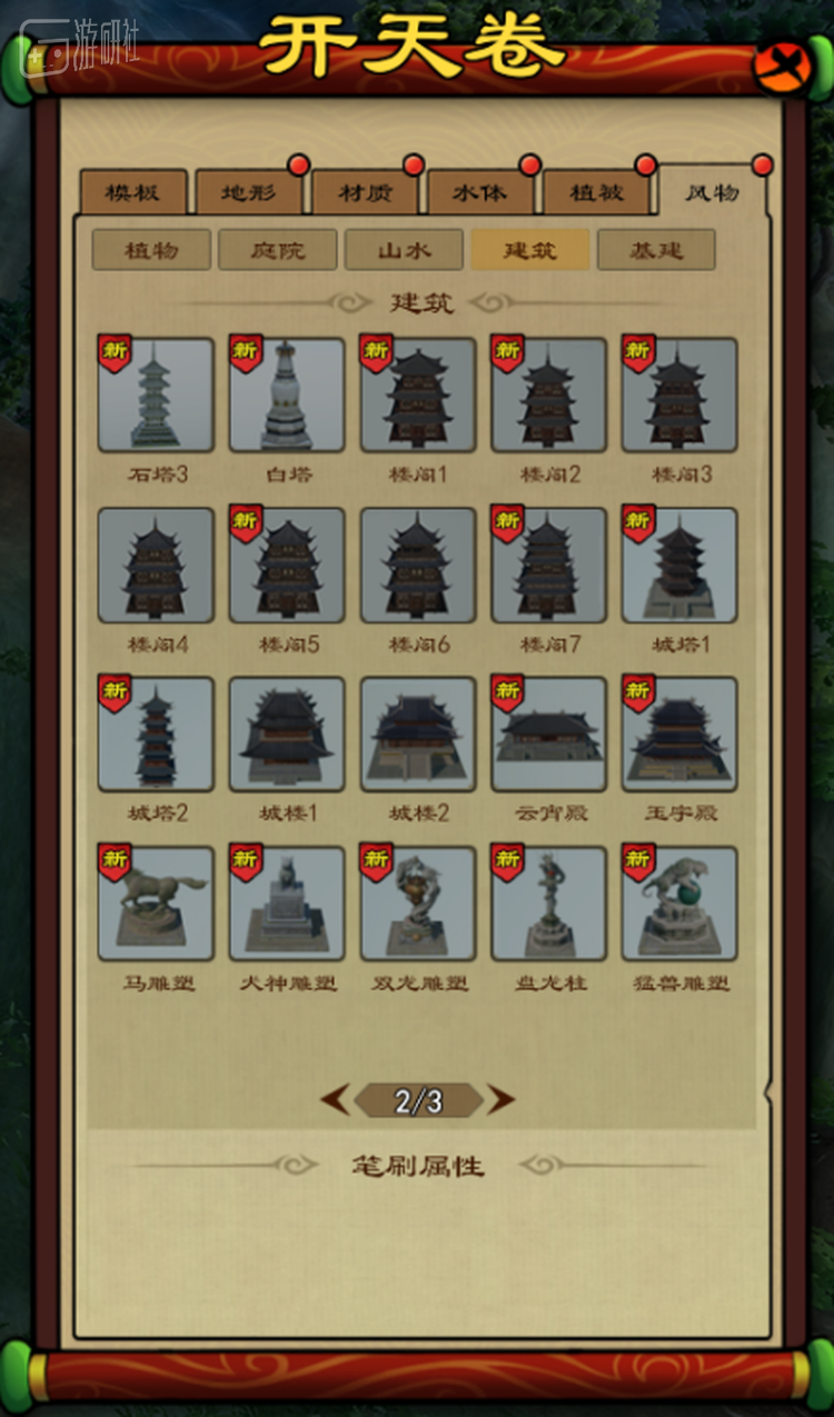 另一个休闲模式“桃花源”则没有任何生存压力,并且引入了名为“开天卷”的地形编辑菜单,更符合普遍认知里的造景游戏玩法。