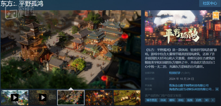 西山居的《东方:平野孤鸿》(下文简称《平野孤鸿》)早在2022年登录Steam,由于版号原因没在国区上架。去年年底拿到版号后,游戏终于在近期正式发售。