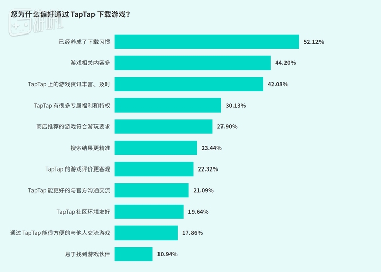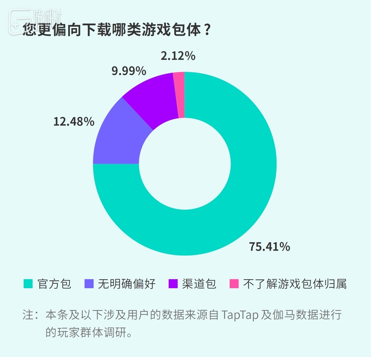 - 超 75%用户更偏好下载官方包,TapTap为仅次于游戏官网和苹果应用商店的第三高的下载渠道