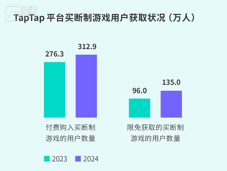 2024年TapTap买断制游戏售出400余万份,付费用户超300万,五年累计售出2500余万份。但限时免费获取用户也达百万级,未来挖掘买断制用户付费能力仍重要。