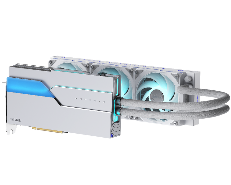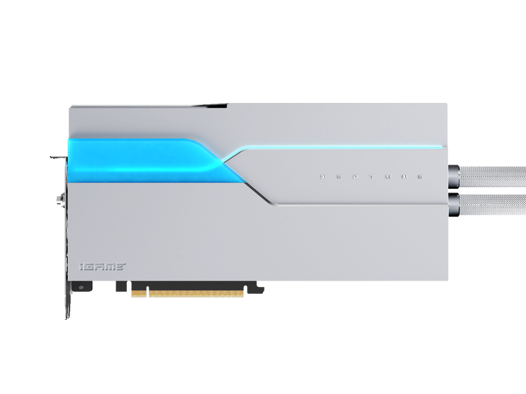 iGame GeForce RTX 50系列的水冷旗舰Neptune同样有着重大变化,被玩家称为水神的Neptune是专对散热效能有着严苛要求的硬核玩家所准备的水冷装备。全新Neptune延续备受好评的银白外甲设计,并打造了与前代产品完全不同的流线型线条。其优雅流淌的形态宛如地球的生命源泉,赋予产品生动而流动的美感,配合“流动RGB”将展现美妙绝伦的光影盛宴。新增的设计结构“深海冰晶”则为本代新品整体设计的点睛之笔,一抹清新的冰蓝点缀于银白外甲之上,即展现了水流般的动感,又融合了冰晶般的静谧。