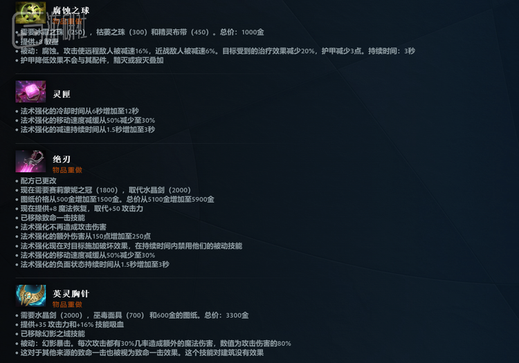 天堂之戟、缚灵索、腐蚀之球、绝刃、英灵胸针等道具重做。