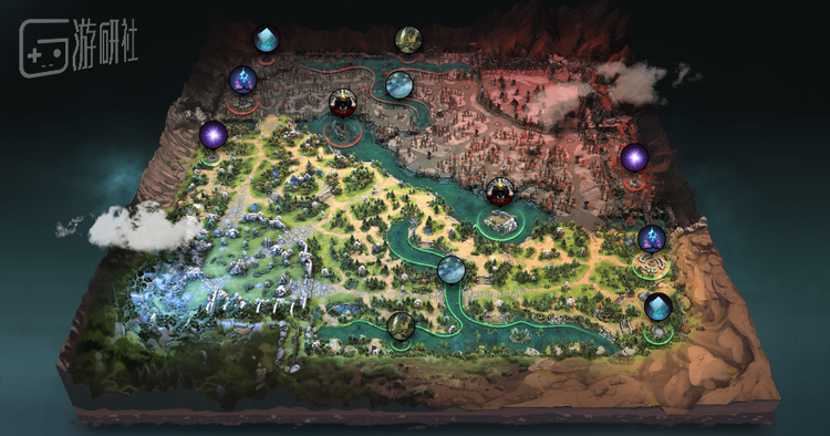 除了上述调整,地图中其他地形也进行了迭代,区域特定的地图加成效果(如强大矿山)等已经移除;位于地图角落的前哨已经移除;双生之门的位置改为地图角落里全新的高地区域,靠近痛苦魔方;在整体上修改了地图,略微调整了中立生物营地、树木和高台的位置。