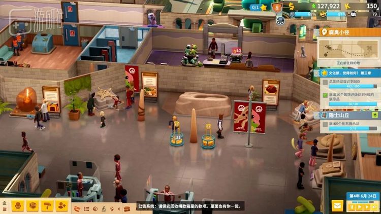 乍一看有点像是变成了《过山车之星》《侏罗纪世界》这类乐园游戏的逻辑,但具体到真正的游戏内容上,你会发现虽然是要“服务游客”,但其实最核心的玩法是展品的获取与管理。
