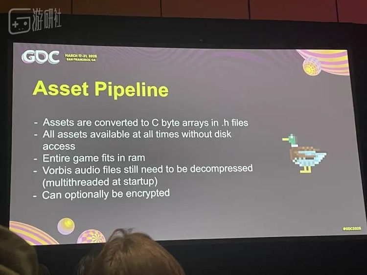 而在资产管线方面,《动物井》的所有游戏资产在离线状态下都被转换为C++头文件中的字节数组,并直接包含在代码中,这意味着游戏运行时不需要进行文件I/O,所有的内容都直接加载到内存中,从而实现了极快的加载速度。这种方式也方便了资产加密,Basso使用AES加密离线加密资产,而解密密钥则与玩家在游戏中解决的谜题相关联。