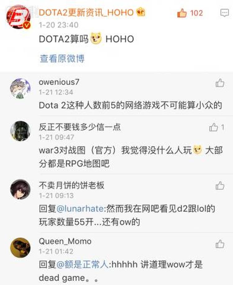 在我社关于这个话题的微博下,有一些比较半开玩笑自嘲性质的评论,比如DOTA2玩家非常熟悉的HOHO哥这样评论道: