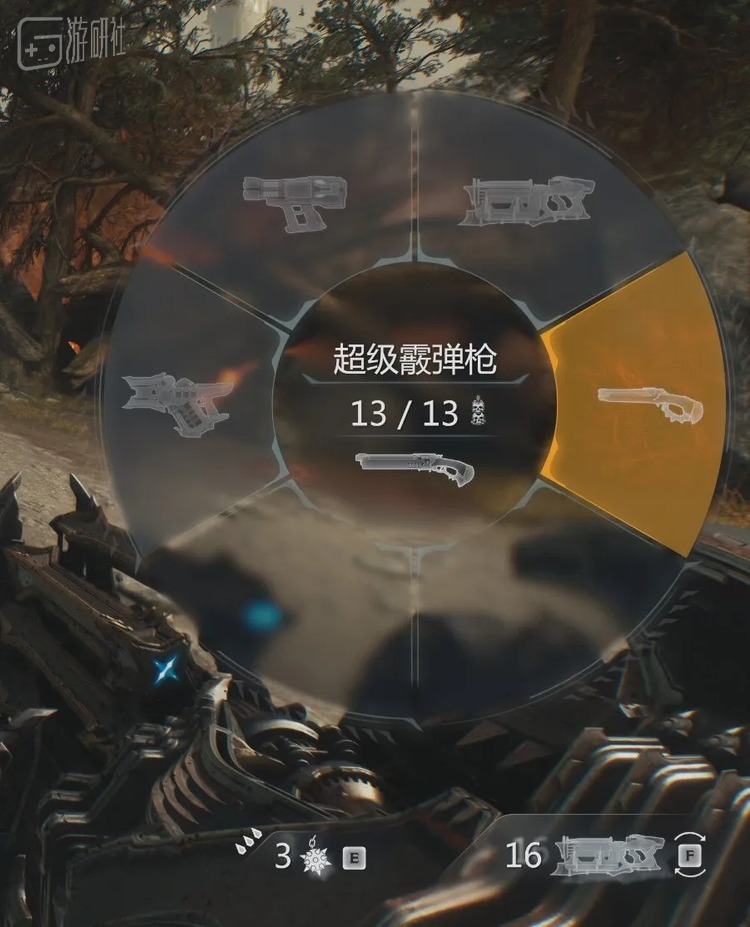 例如,一号位是持续输出火力的泵动霰弹枪,和打完就跑的双管超级霰弹枪组合。二号位是发射小刀片的全自动破坏枪,跟大威力却只能单发射击的穿刺枪搭配。