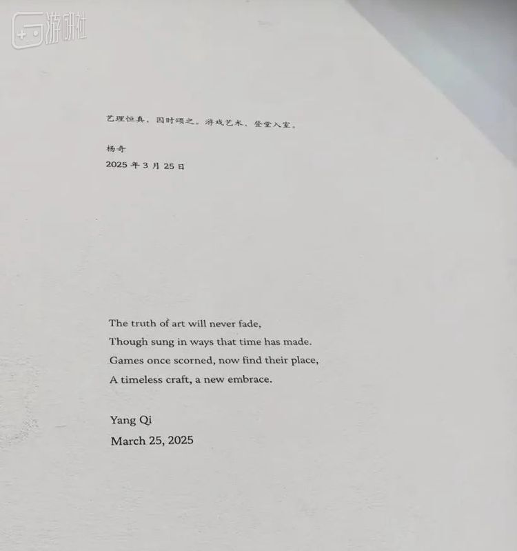 在参观完所有展品后,回到美术馆大厅我才看到馆长、冯骥、杨奇为展览题写的前言。其中杨奇说的最短:艺理恒真,因时颂之。游戏艺术,登堂入室。