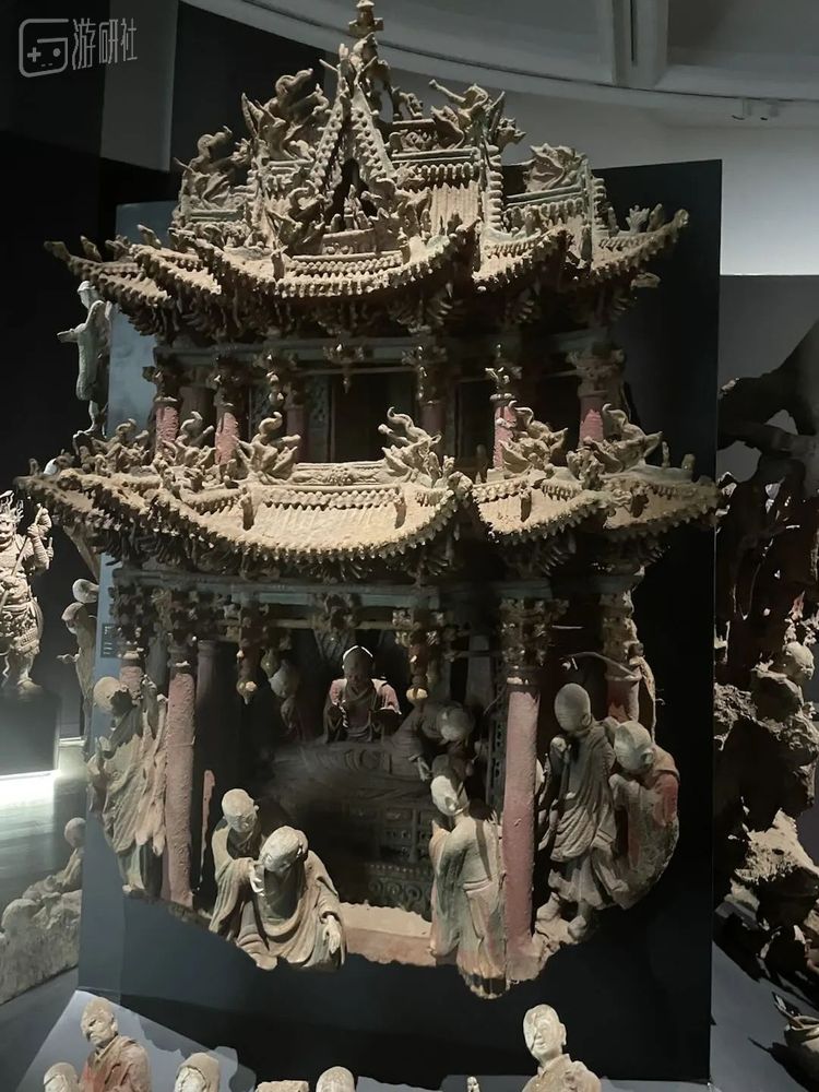 特别是游戏中小西天场景的悬塑展品上(蓝田水陆庵的悬塑原型),他们还特意把原本高高挂在梁柱之间的塑像,拆分成小块等比复原了出来,并放到了观众能看清的位置。让游戏中那些雕梁画栋的场景,变成了字面意义上“看得见摸得着”的东西,而不用再隔着一层电脑屏幕。
