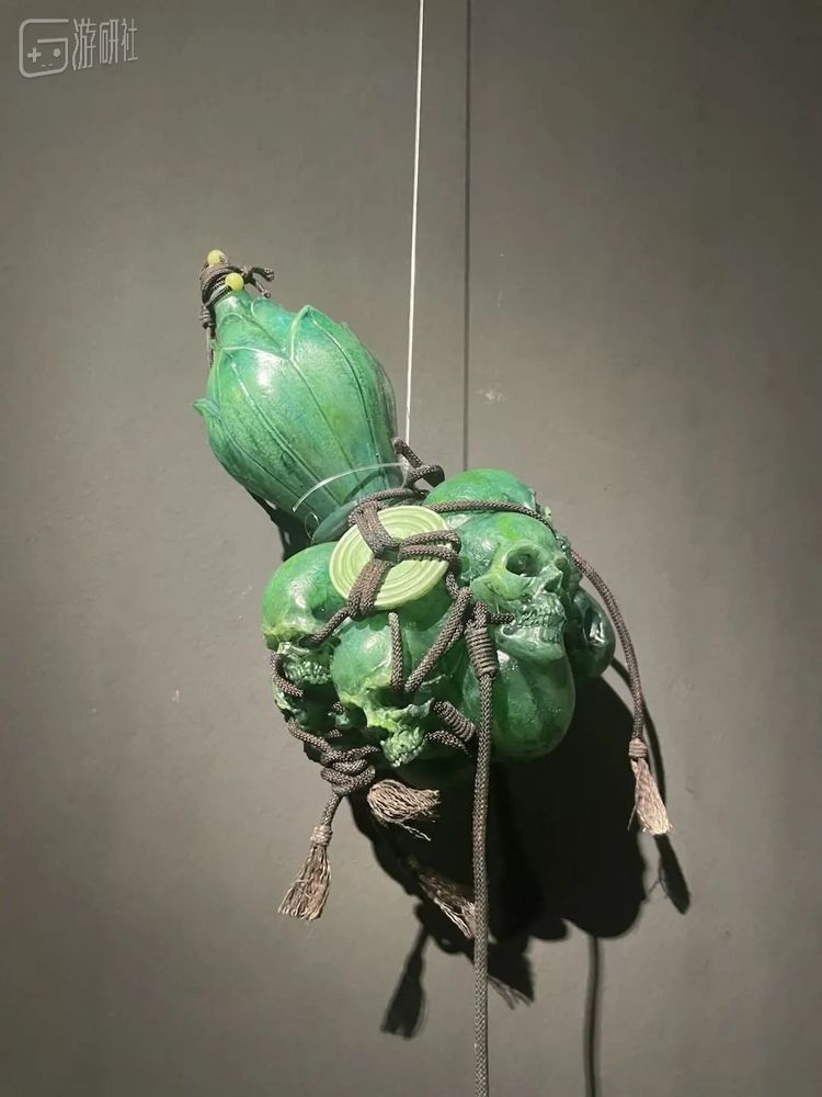 比如最后决定的游戏结局走向的金箍,就是用足斤足两的纯金打造;玩家一路收集的葫芦,也都按照故事设定中的材质尽可能还原了出来;还有伴随天命人一路打怪升级的棍子,也挂满了整整一面墙。