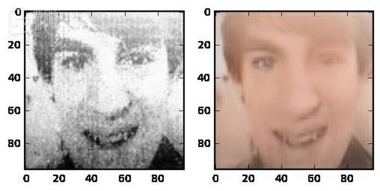Meertens预先训练深度神经网络算法识别了一小部分脸,然后让其来对Game Boy摄像头拍出的照片进行优化和还原,结果相当惊人,整个头部图片都能很好的被还原出来,肤色也能被算法所准确的识别。