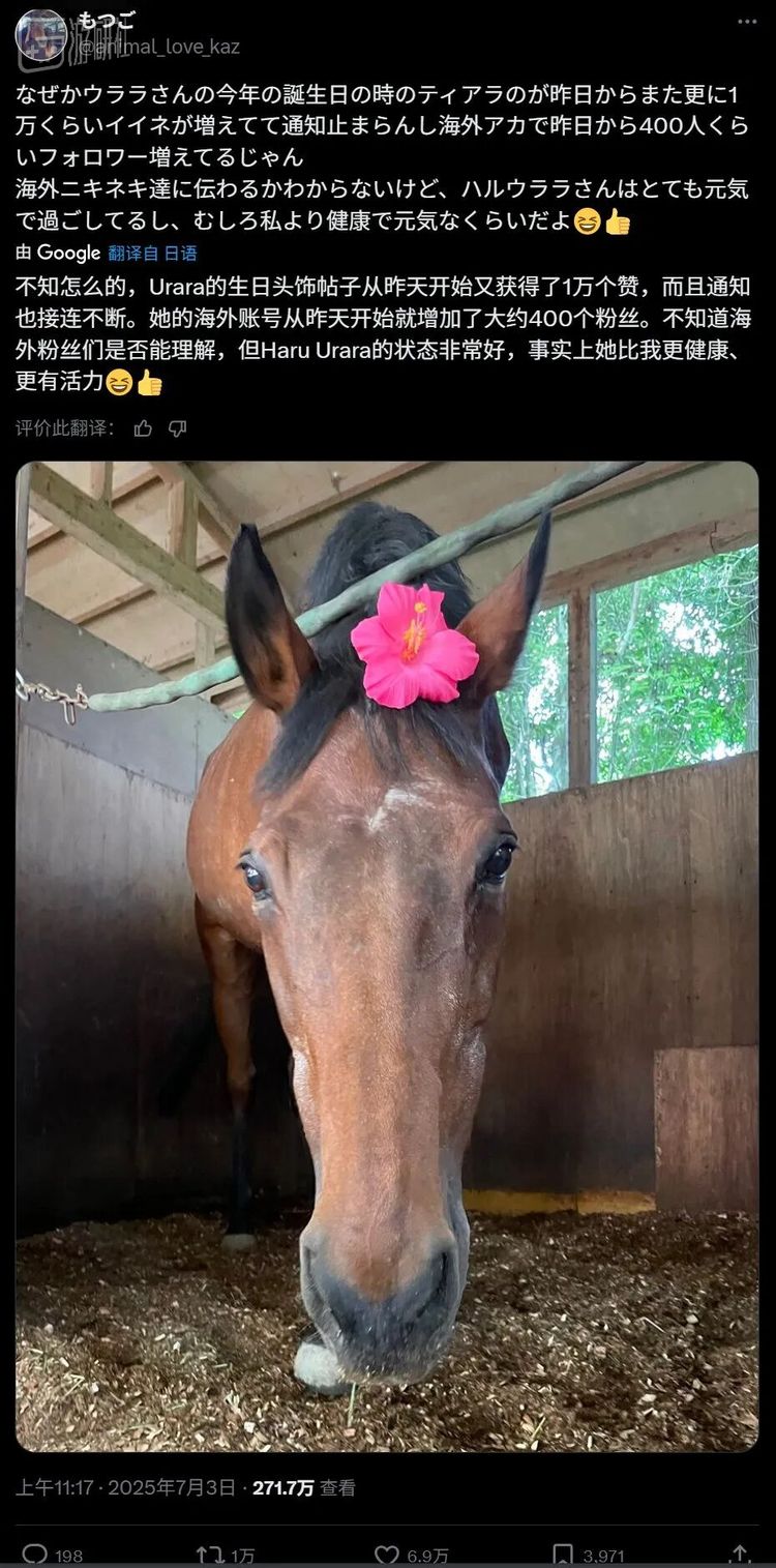 这种影响力实际也是双向的。玛莎马场曾透露,从2018年开始,来探望乌菈菈的游客就明显多了起来,这之后也一直能收到捐赠给马场的饲料与胡萝卜,这些都有对春乌菈菈安度晚年起到帮助。