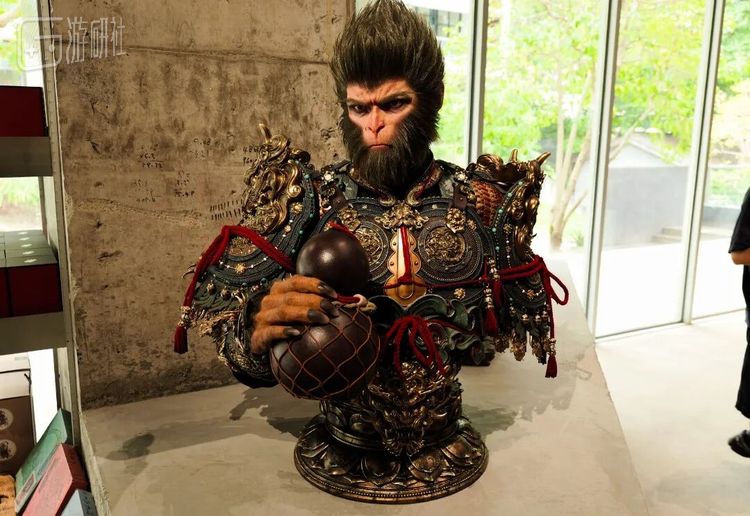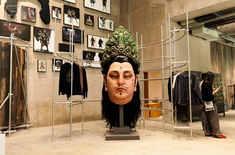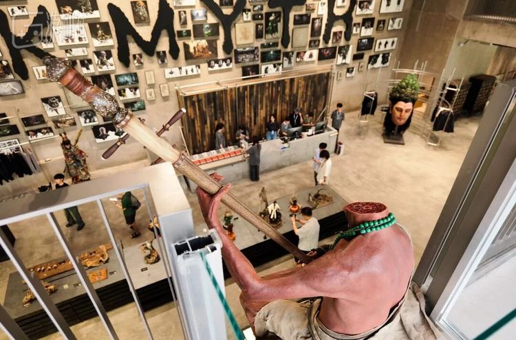 相较于购买黑神话IP的商品,这家店铺差不多可以当成一场纯展览来看。店内空间极为宽敞、展品与商品穿插陈列,大量雕塑、模型、绘画装置一一铺陈,整体视觉非常“有展感”。